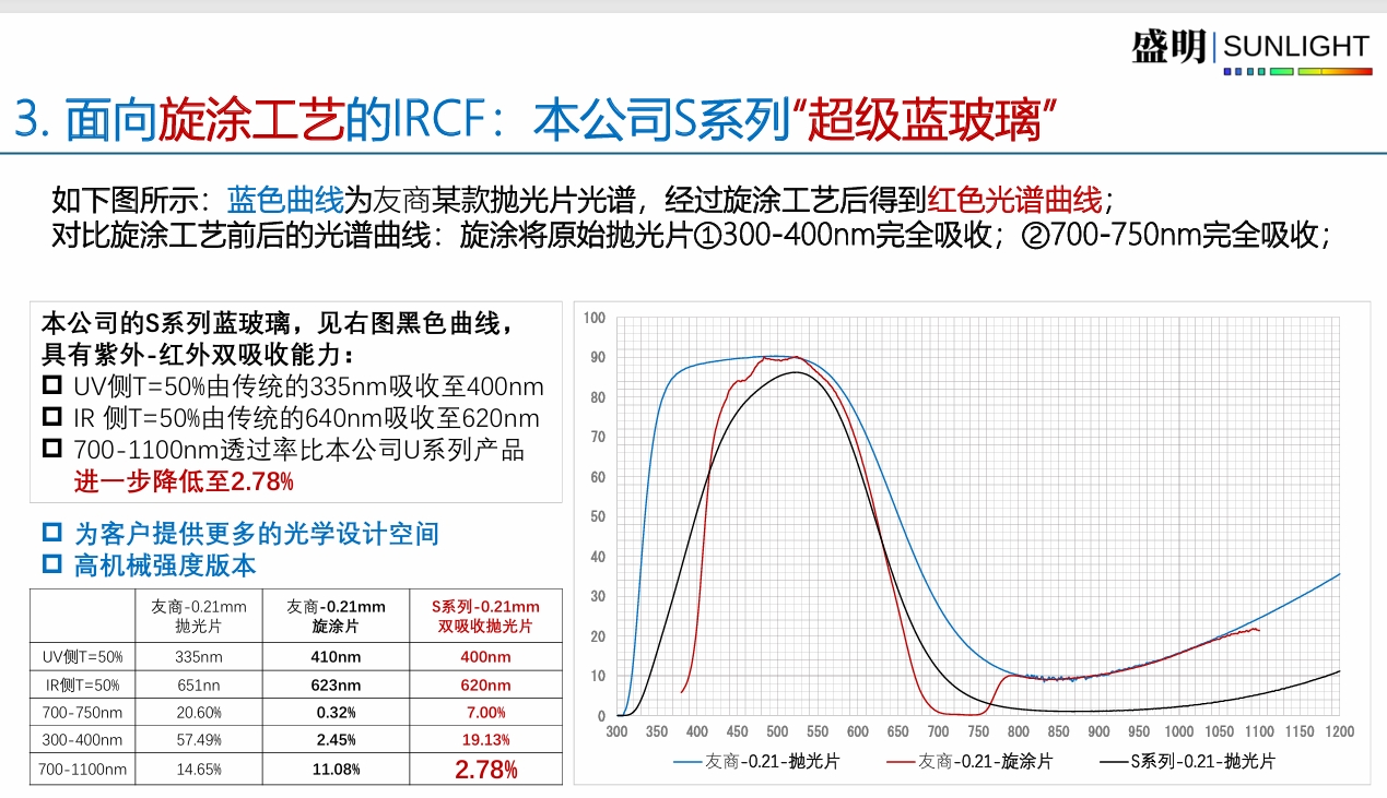 本司新研出了面向旋涂工藝的S系列“超級藍玻璃‘’